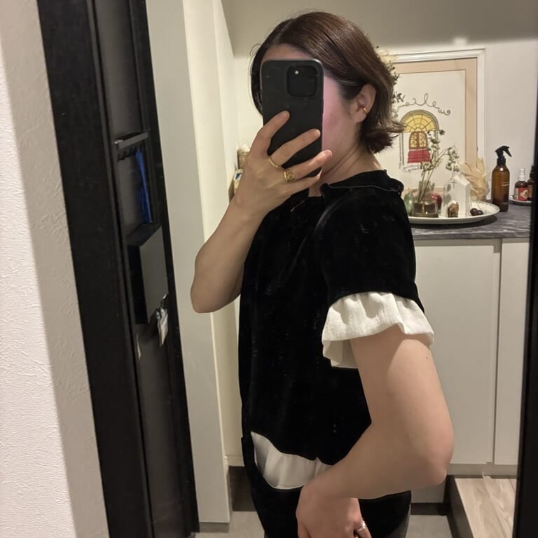 ベルベット素材なのに半袖ブラウスは短期決戦!