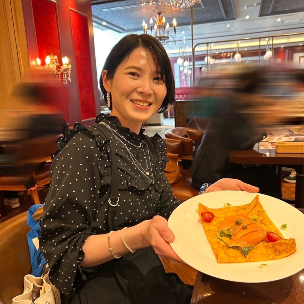 美しききな様とクレープ。お店の雰囲気とお洋服がピッタリ♡