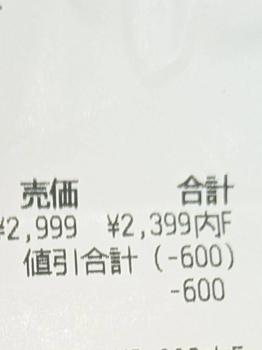 アウトレット価格2999円のところ、20%Offのキャンペーン中で、なんと2399円で購入できました