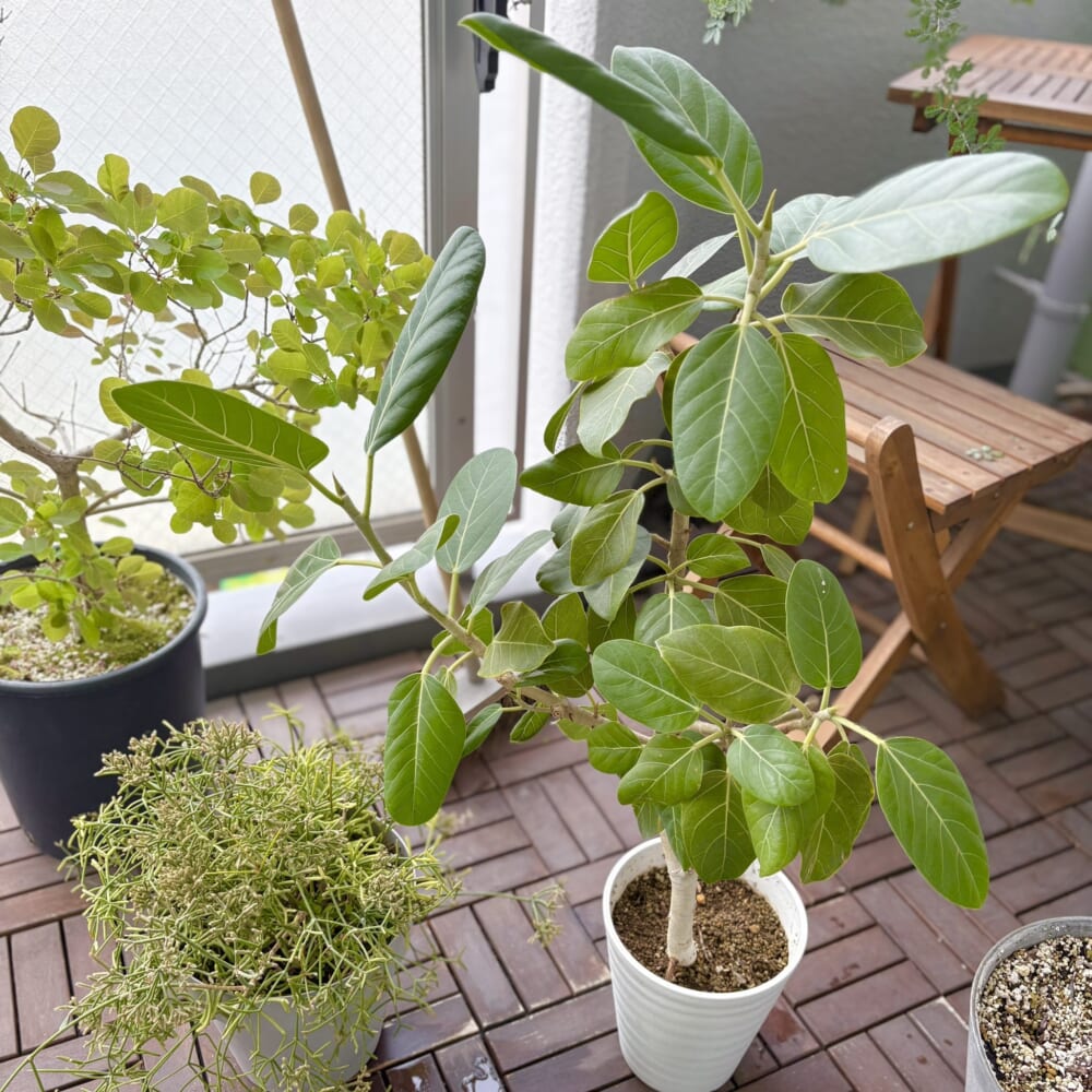 我が家はマンションなのでベランダも広くはないのですが、できるだけ緑をわさわささせて小さな森っぽくしたいので、鉢植えでも大きく育ってくれそうなグリーンたちをいくつか育てています。