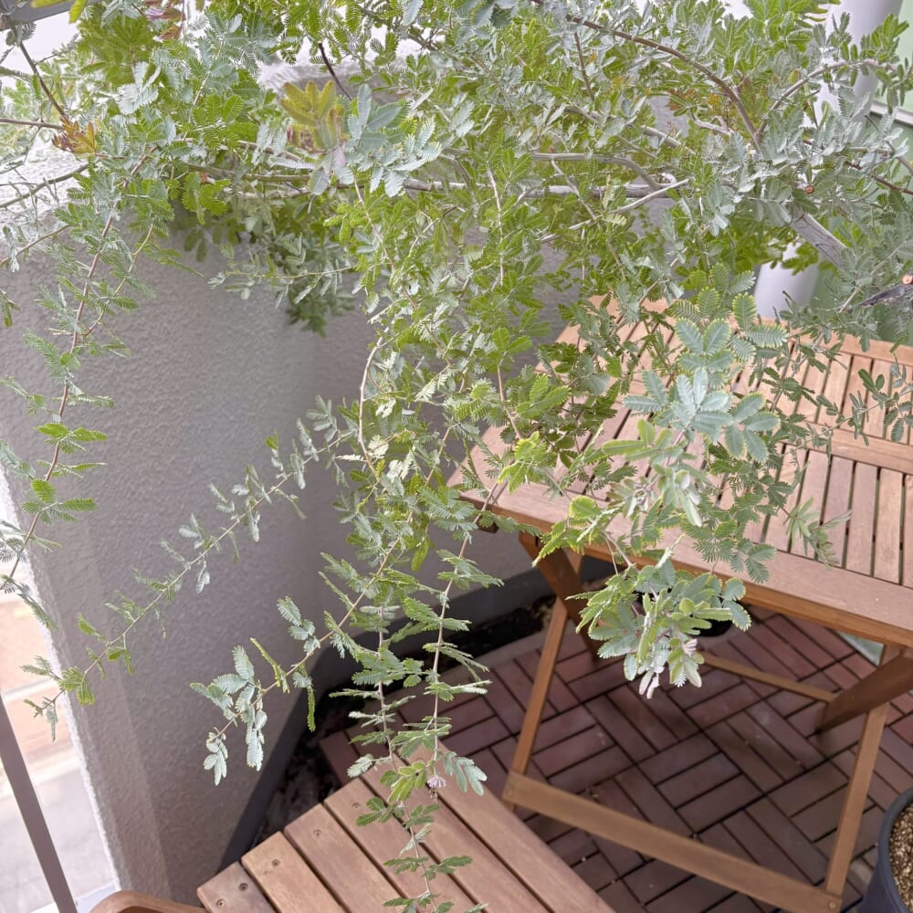 ベランダ森化計画に大いに貢献してくれているのが、こちらのミモザアカシア。
