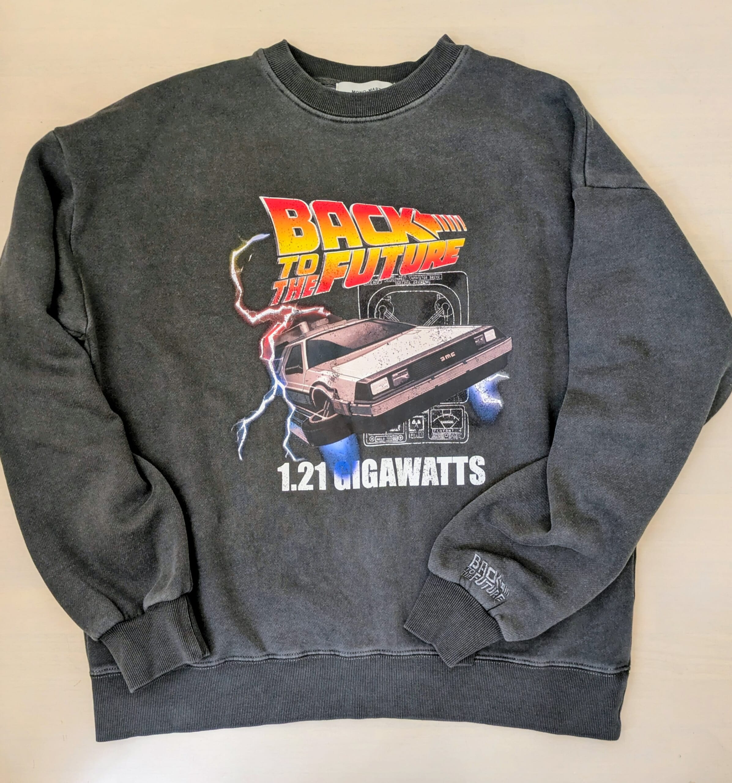 そろそろ着納め デロリアン柄【BACK TO THE FUTURE 】裏起毛スウェット【石川県在住40代 なに着てる?】