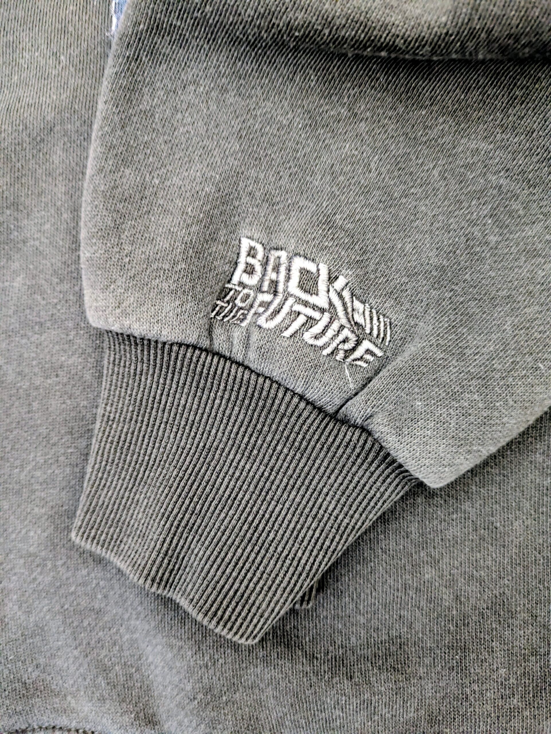 そんな思い入れたっぷりのBTTFのデロリアンが描かれたこちらのスウェットは袖部分のさりげないロゴ刺繍もかわいいです♡