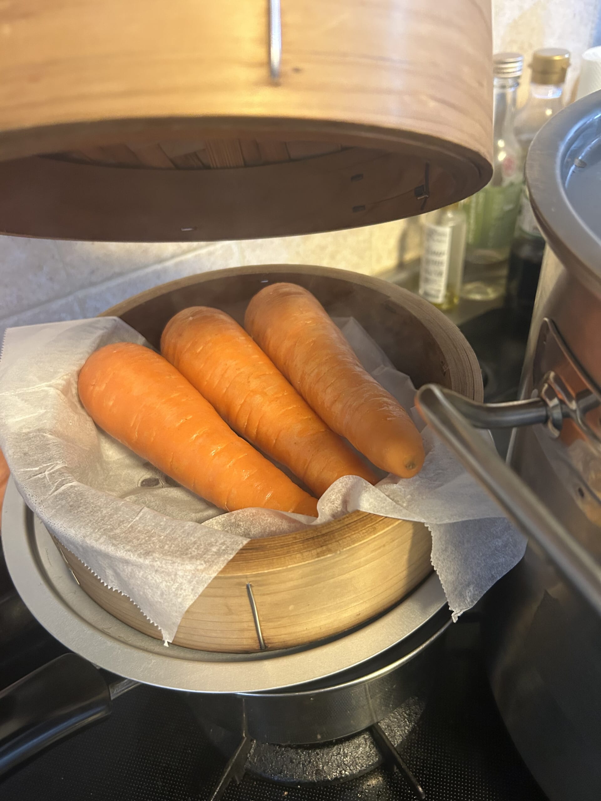 今回は蒸篭で丸ごと人参を蒸してみました。