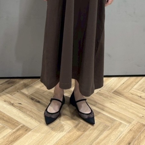 つま先部分から少しネイルカラーが覗くのもとってもかわいいポイントです。ほぼスニーカー生活ですが履くと気分が上がるネットフラットシューズもこの春はたくさん履きたいです。