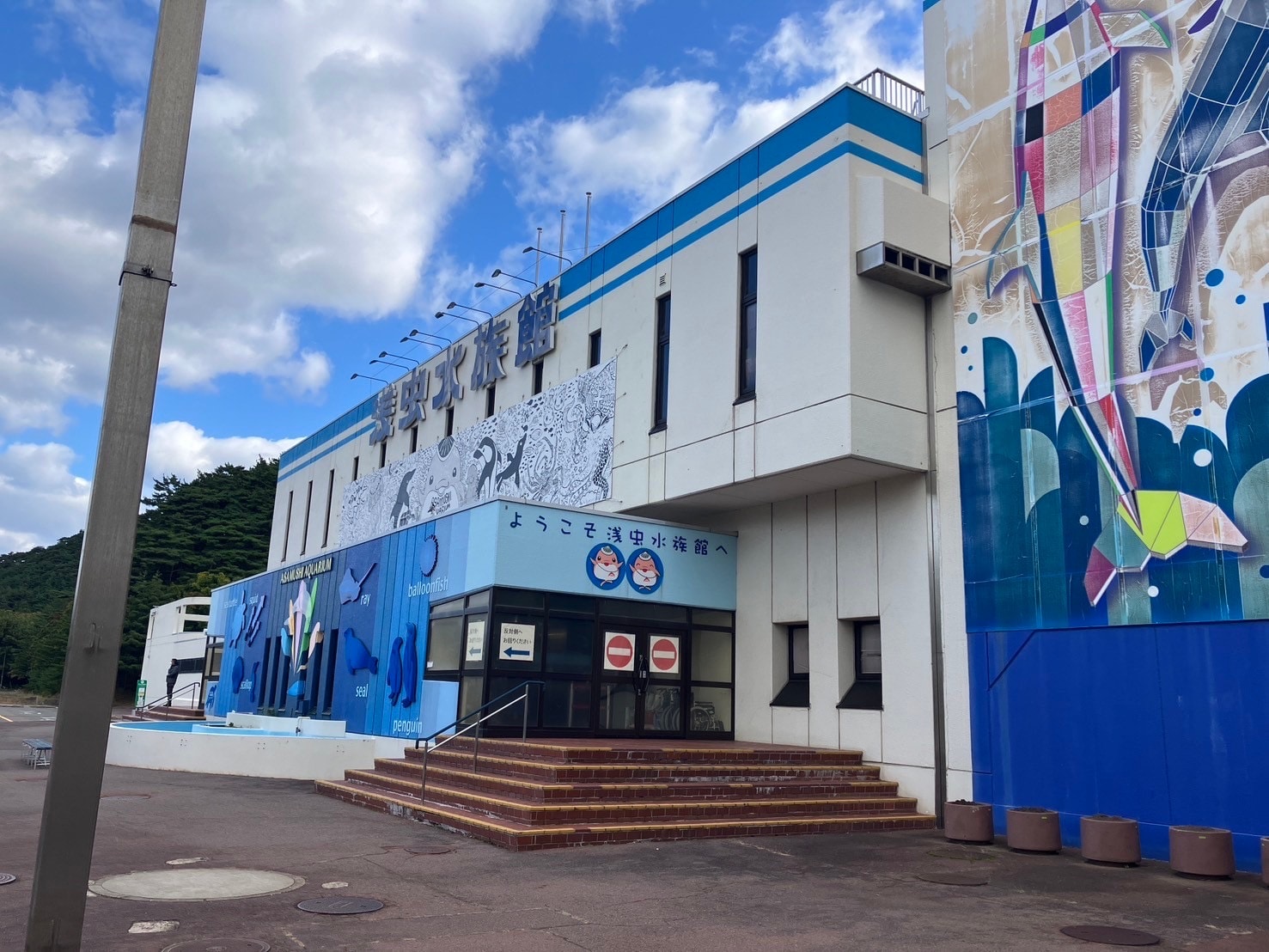 青い建物がインパクトあります。こちらの水族館では、イルカパフォーマンスや青森の海の生き物の展示などが楽しめる施設で、休日は家族連れで賑わうそうです。私たちは、平日の開園と同時の9時に向かったので、スムーズに入れました。
