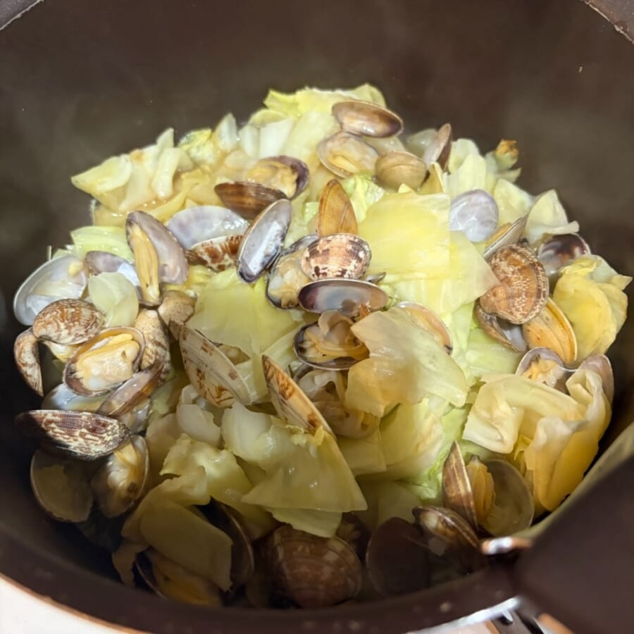 あさりの旨みをしっかり吸ったキャベツは良い感じの軟らかさになって食べやすくなり、夫もお酒がすすむようでした。(もちろん私も)
