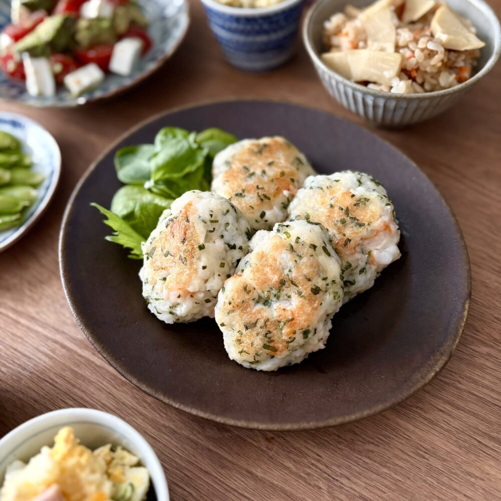 小さく刻んだ海老とはんぺん、大葉をこねくり回して丸めて焼くだけの、簡単メニューです。
