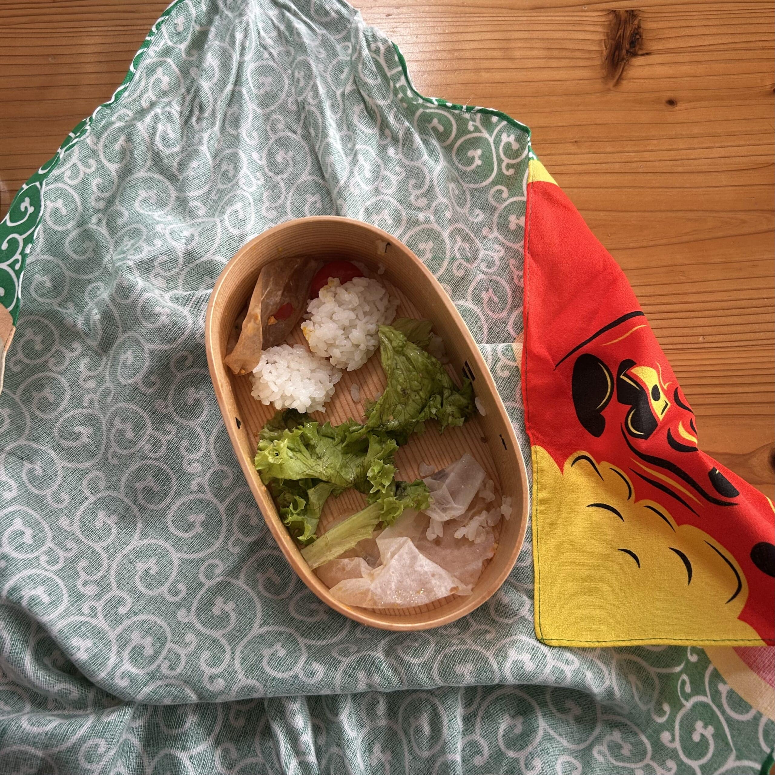 キャラ弁とか更にハードルが高いものはまだ作れないので、息子がお友達と楽しくお弁当を食べられるように風呂敷をユーモア溢れるものを選びました。