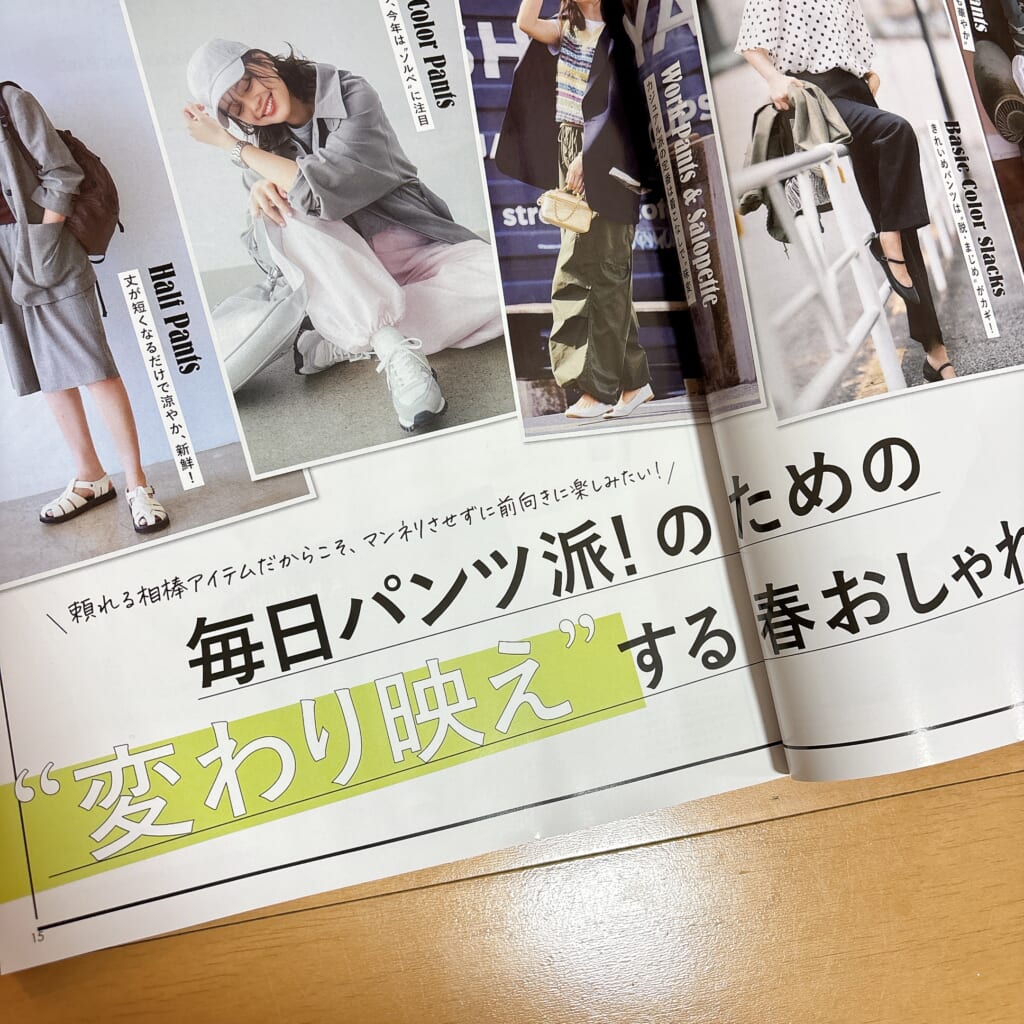 といった、1着は愛用しているものがあるのではないかな、という今年顔のパンツの着こなし実例がたくさん載っているので、すぐにでも真似してみたくなります♪