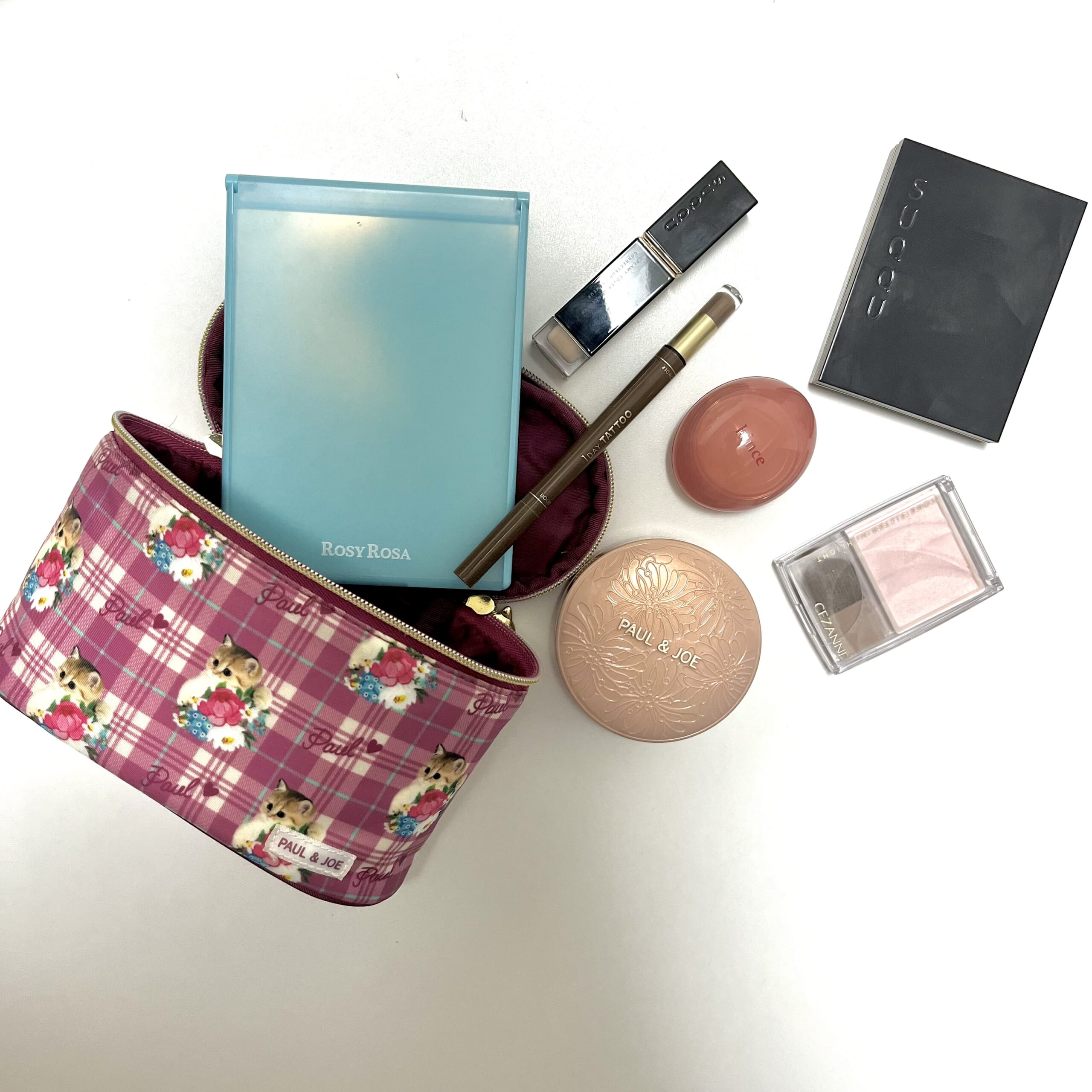 ポーチはノベルティでいただいたポール&ジョーのバニティポーチ。