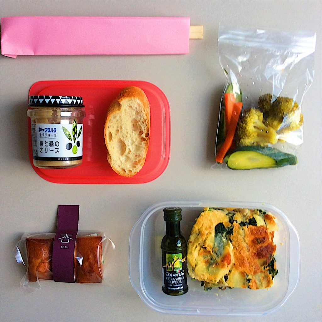 ほうれん草のキッシュ、芽ひじきのピーマン炒め、