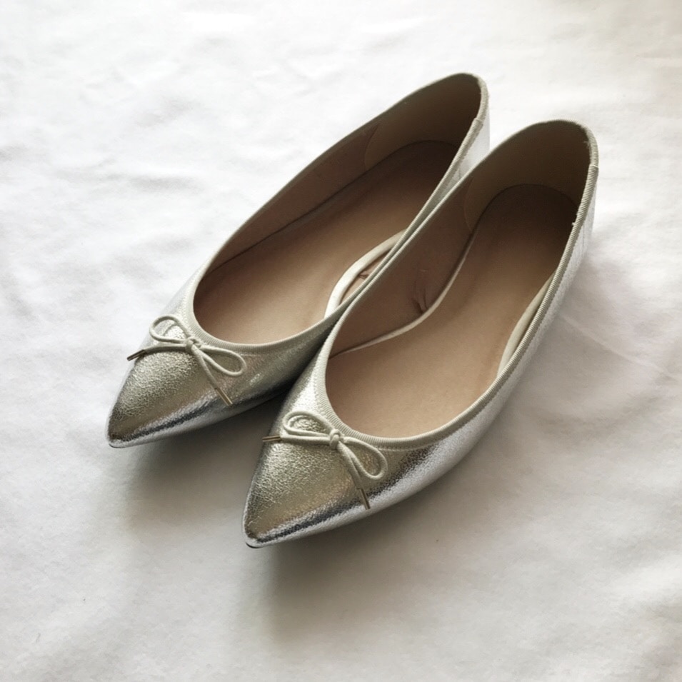ポインテッドトゥなのでフラットシューズなのにすっきり見えます。