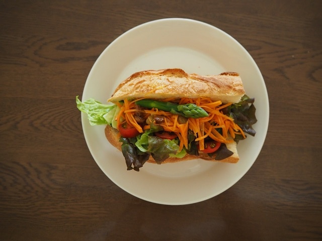 翌日、あまったものを詰め込んだバゲットサンドになりました。