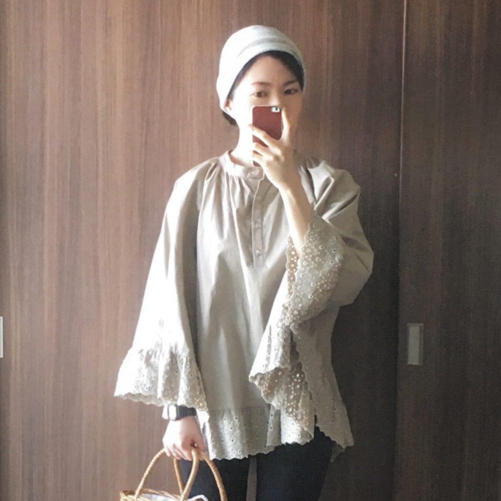 ニュアンスカラーのトップスは