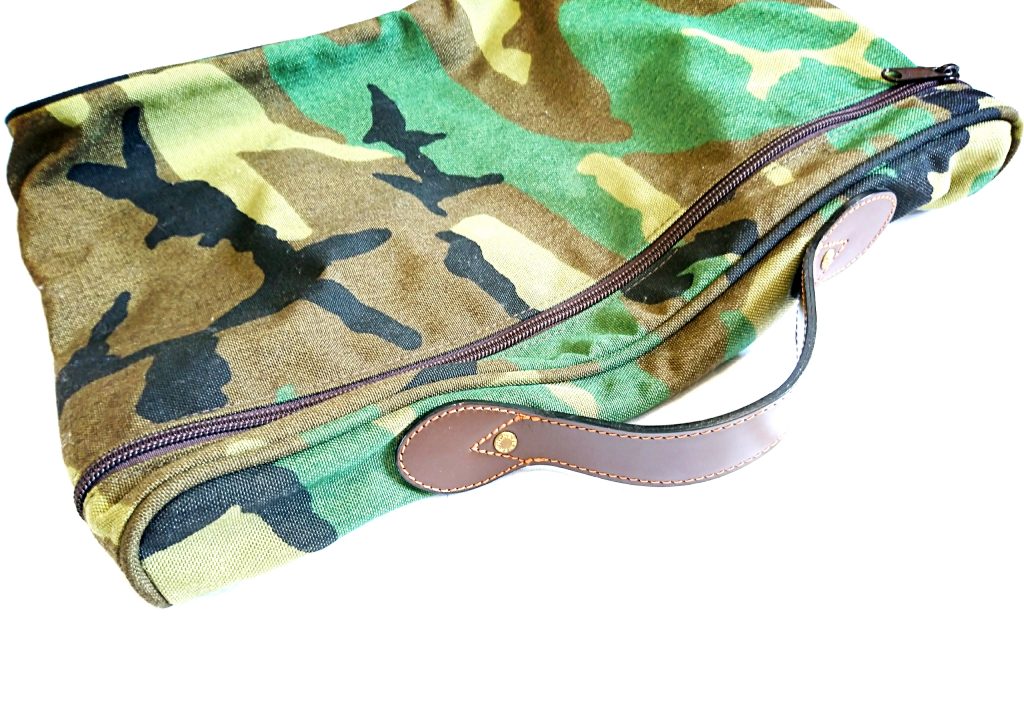 こちらは古いもので、カモフラが流行る10年以上前にフランスで購入してもらったカモフラのブリーフバッグ。