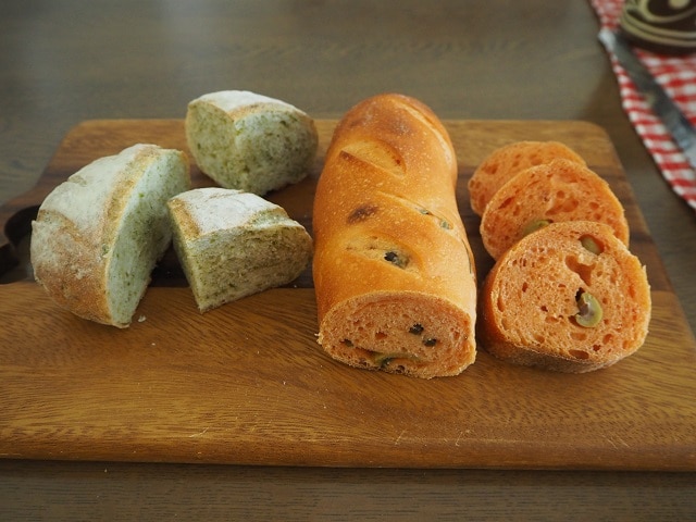 持ち帰りにトマト&オリーブパン、海苔のパンを。