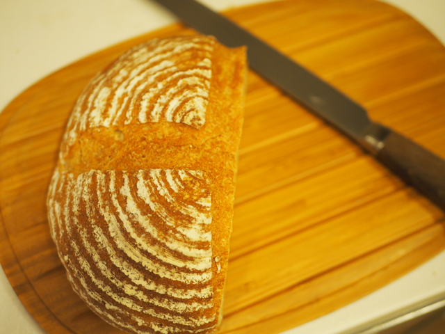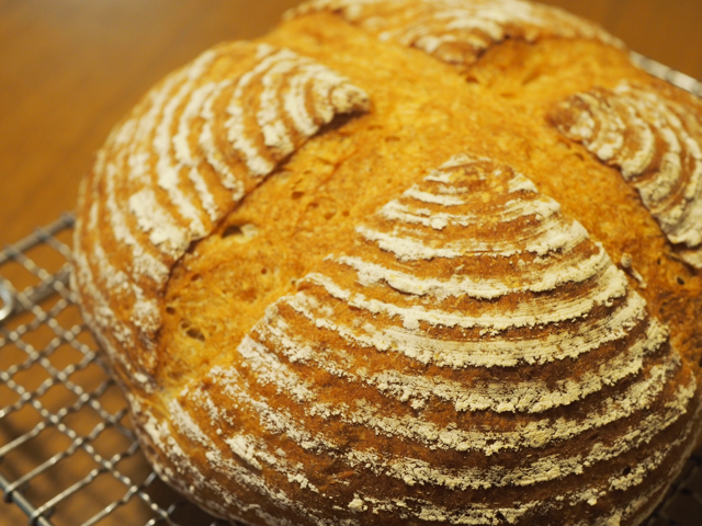 焼きたてカンパーニュを冷まして