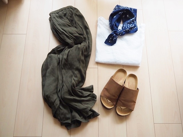 *nico and…マキシ丈スカーチョ&バンダナ×無印良品リネンシャツ
