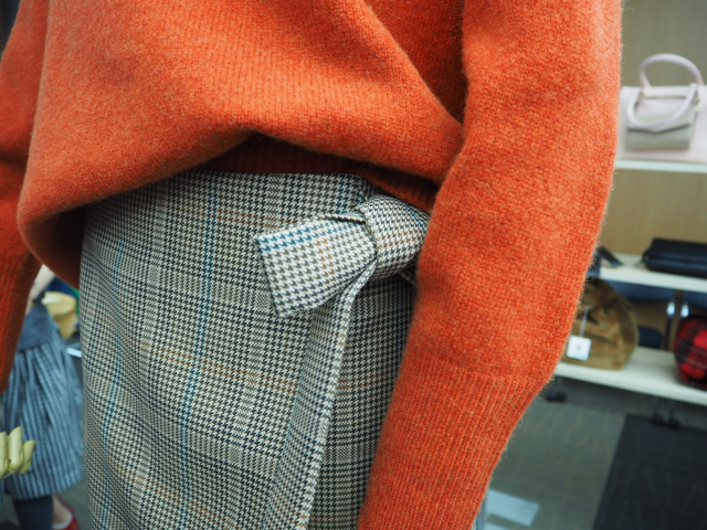 ラップ風チェックスカート。
