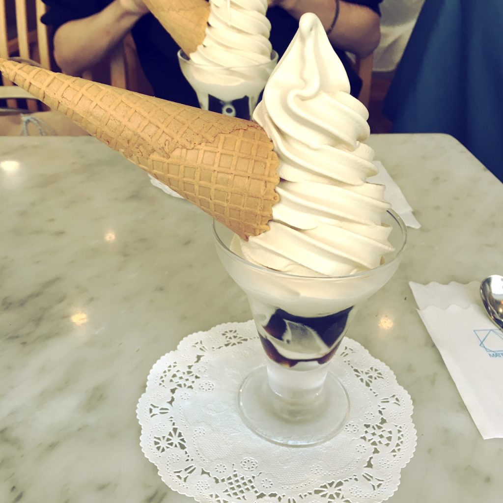 マッターホーンといえばモカソフト、そろそろ季節的に終了が近いのかな?混んでるのかな?とドキドキしながら中の喫茶室をうかがうと、午前中のせいか並ばずに入れました。