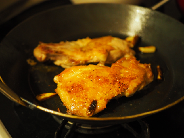 塩胡椒とにんにくで味付けし焼いただけの鶏肉。