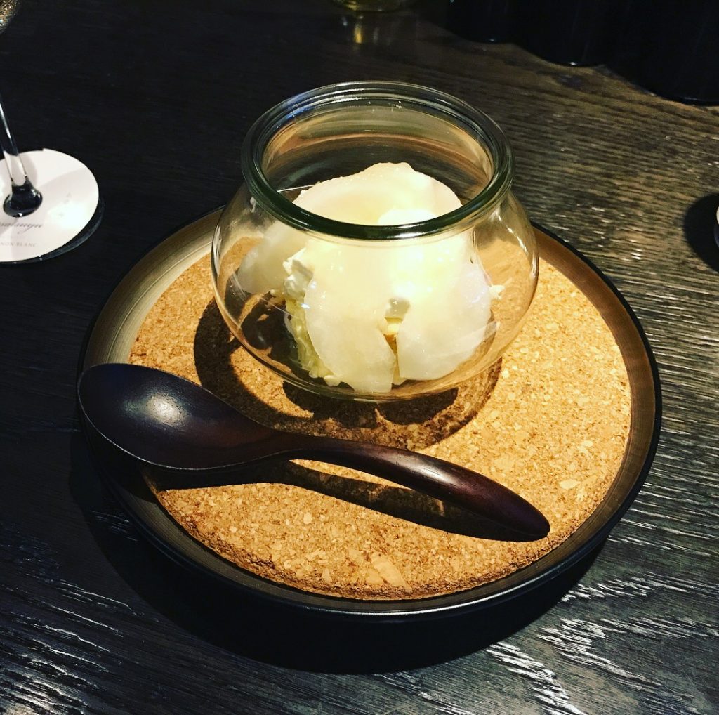 デザートワインに梨のショートケーキを。