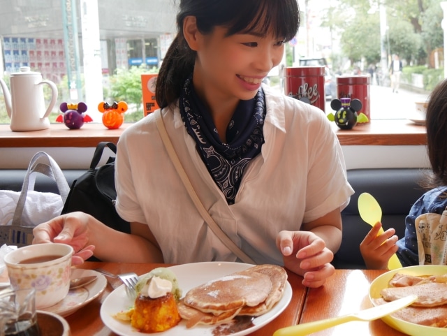 期間限定のハロウィンのパンプキンパンケーキをオーダー。
