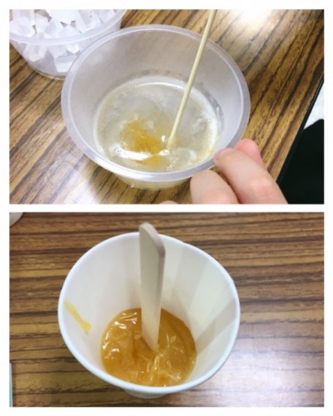 その作業を何度か繰り返し、石けんがしっかり固まり周りの紙コップをはがしたら完成!