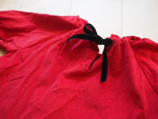 ボタンではなく、ベロアのリボンをつけました。