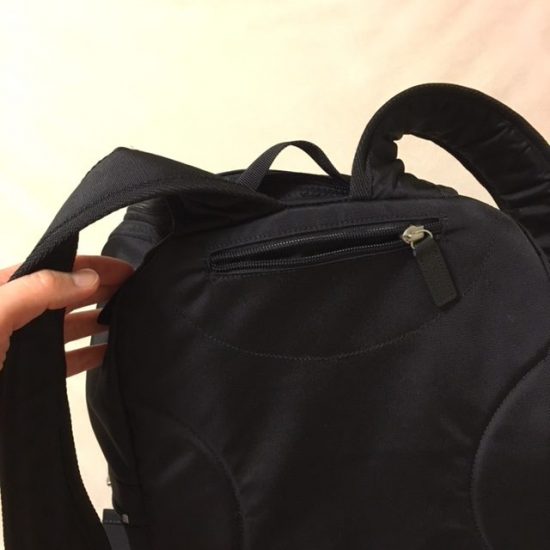 気になる点はリュック自体が縦長のフォルムなので物が下の方に埋もれてしまうことがあるのですが、ファスナーがコの字型でガバッと開くのでそれほどストレスにはなりませんでした。
