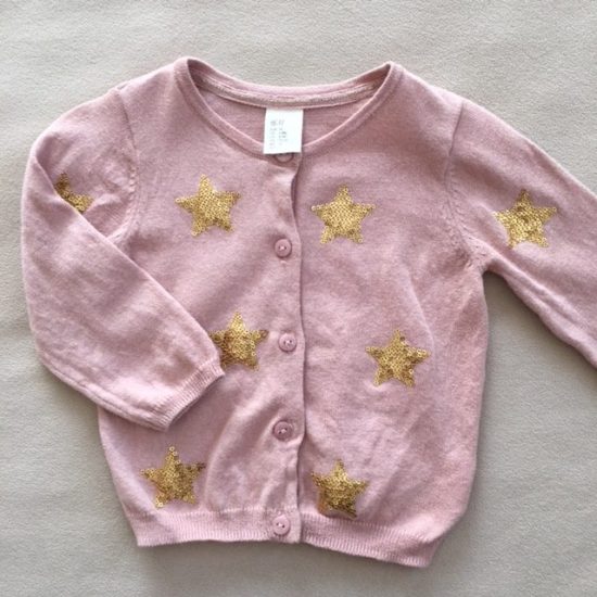 ほとんどお下がりでやりくりしている娘の服ですが、寒い日に羽織るものがベストしかなかったのでカーディガンを二枚購入しました。