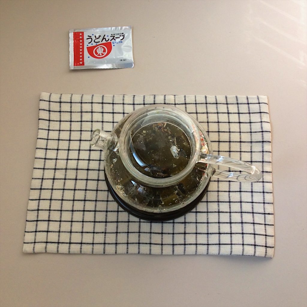 (うどんスープ粉をほんのちょっとだけパラパラ)