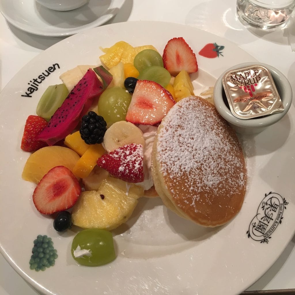 季節のフルーツミックスパンケーキ(だったかな?)を頼みました。