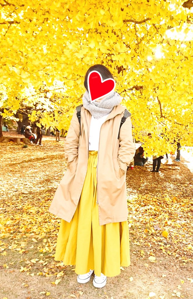 お迎えしたのは黄色(サフランイエロー)のエプロンスカート。