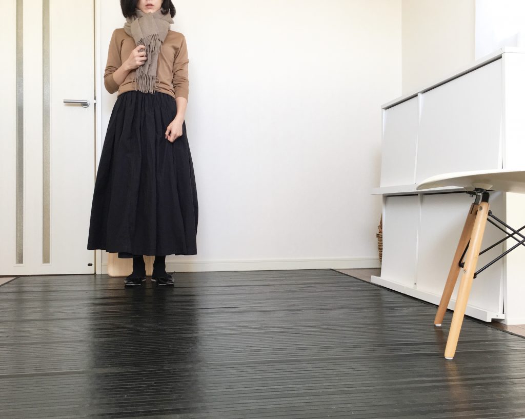 黒いニットとパープルのタートルをそれぞれ着ました。