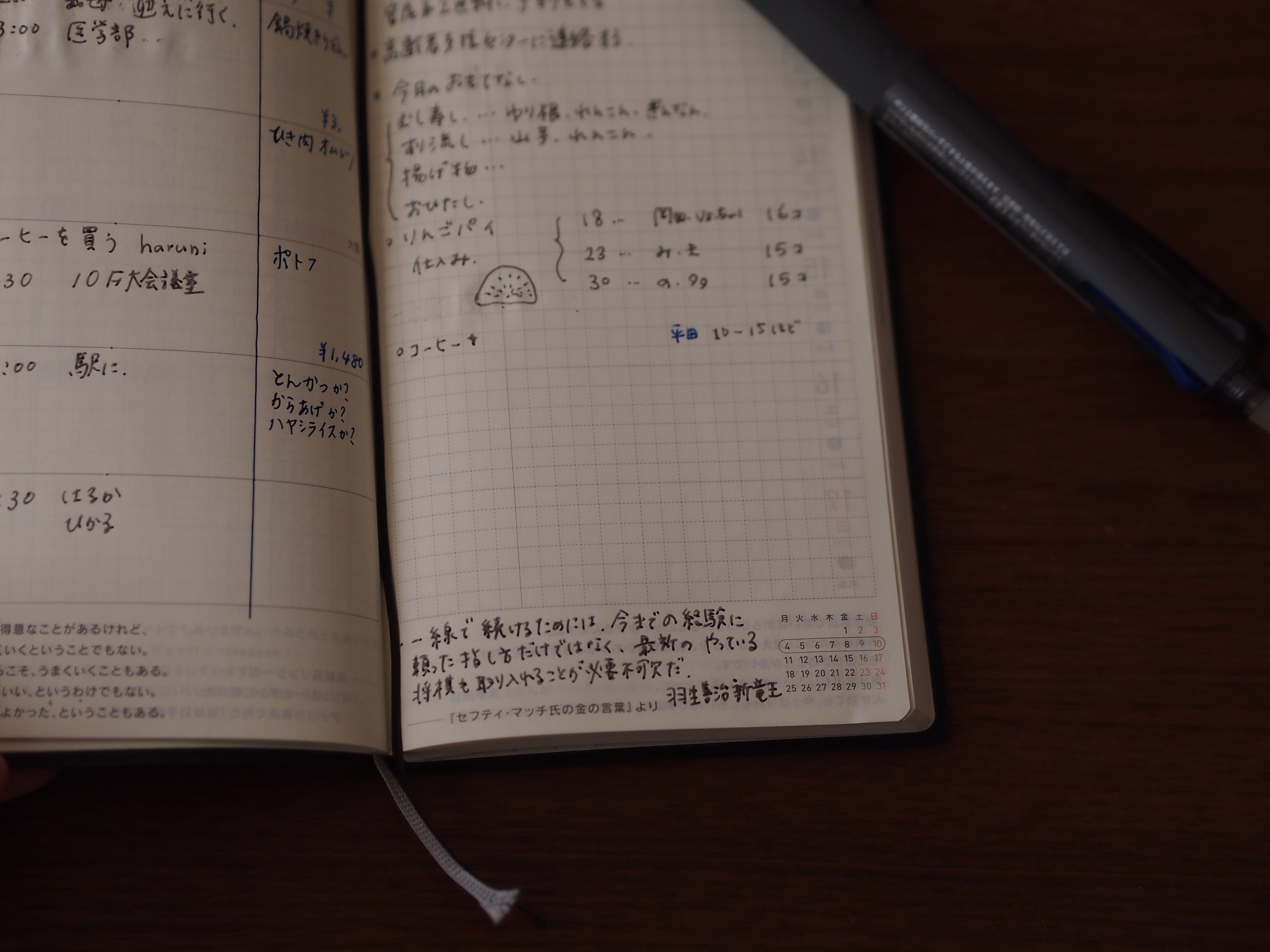 生活を管理するものであると同時に、目標書いたり、印象に残った言葉を書いたり、私の生活に欠かせないものです。