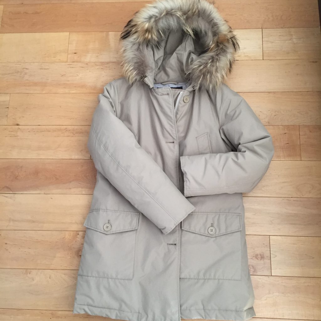 あまりの寒さにWOOLRICHのダウンコートを着て。