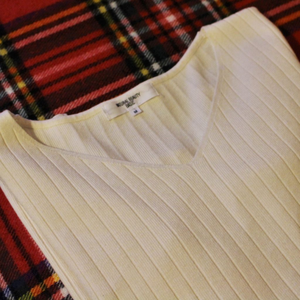 ◆白のトップスは主に職場へ週3日は着て行くNATURAL BEAUTY BASICのリブニット。