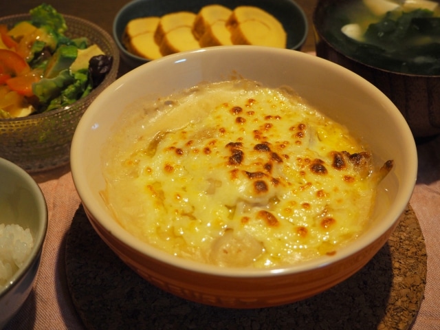 おすましのお雑煮の鶏肉を使ったグラタンです。