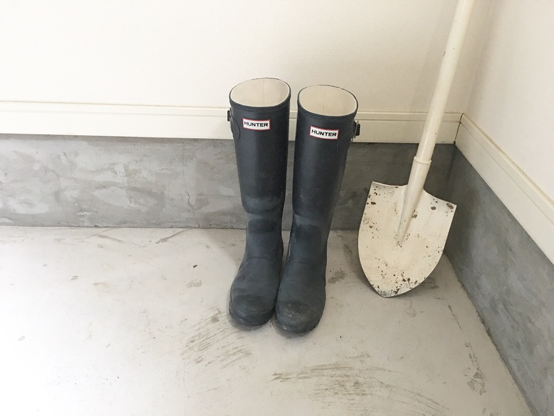 もはや、本気の庭仕事の服装です。笑ってくださいー。
