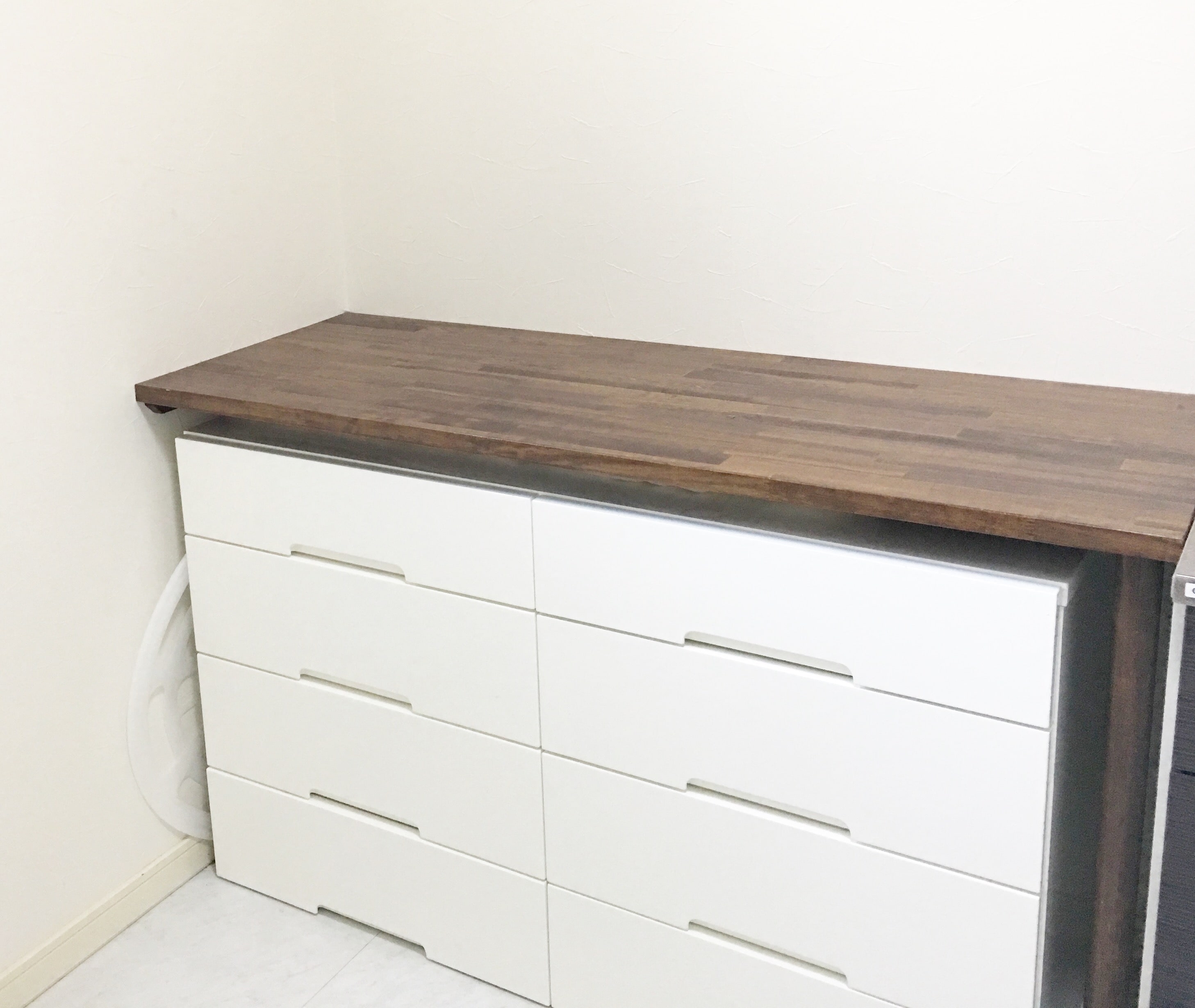 脱衣所に設置してある、防水のしっかりした白いタンスに。
