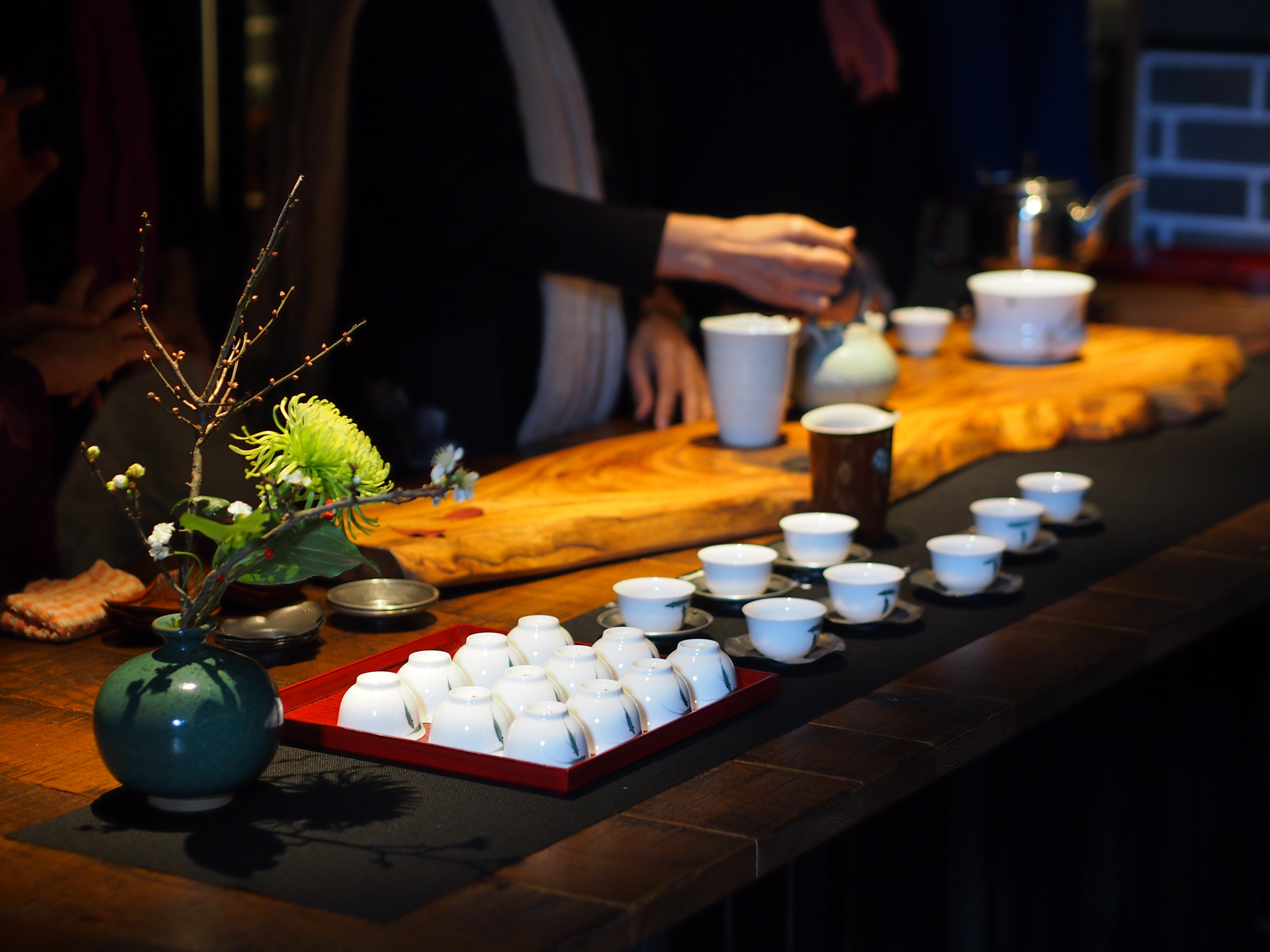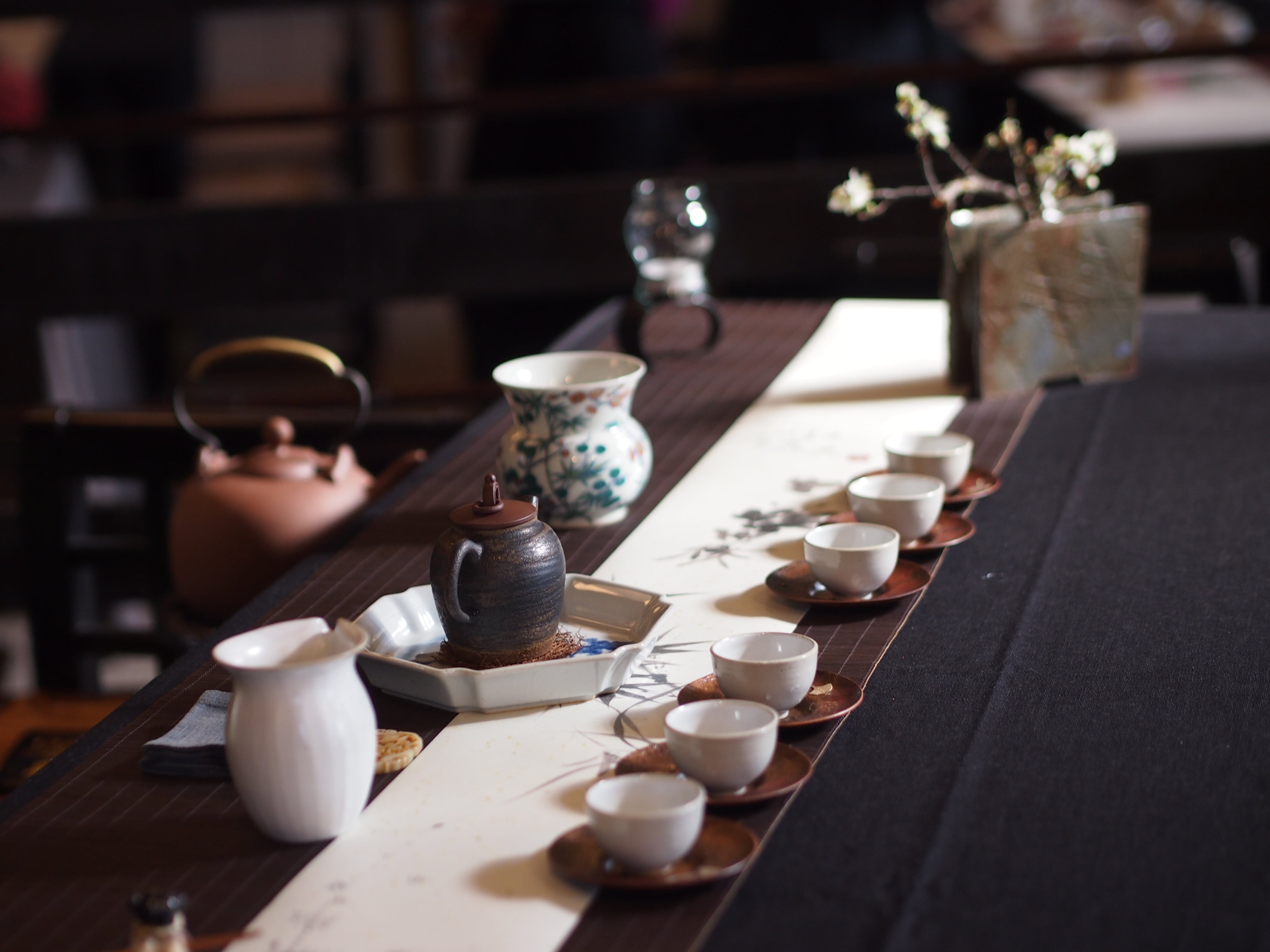 この日のために、先生が厳選されたお茶とお菓子をいただく幸せな時間。台湾や東京から、この日の為に来られた茶藝師さん達の美しい作法に、魅入る時間でもありました。