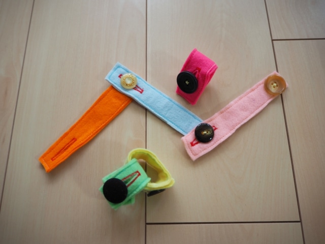 家にあるフェルトにボタンとボタン穴をつけただけです。