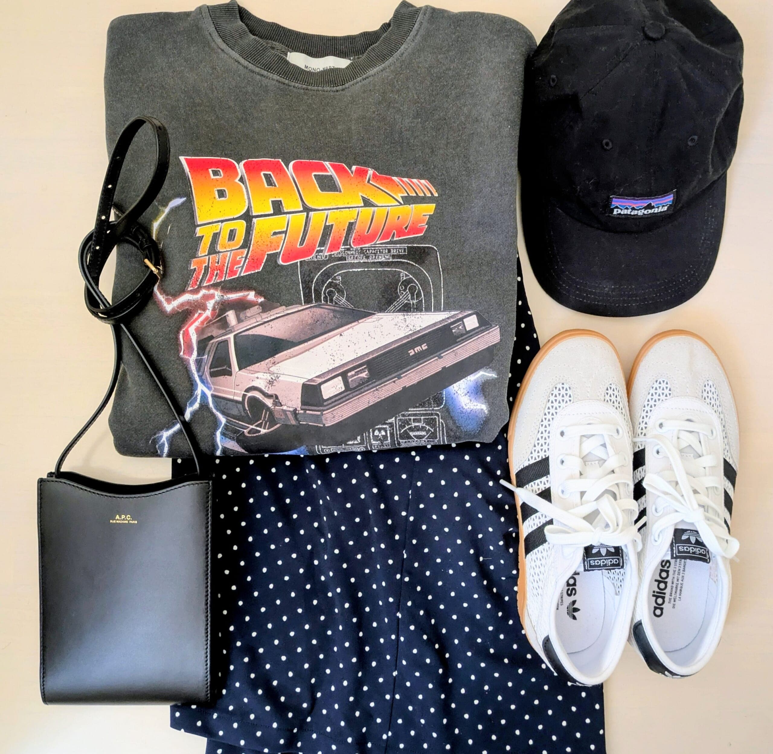 そろそろ着納め デロリアン柄【BACK TO THE FUTURE 】裏起毛スウェット【石川県在住40代 なに着てる?】