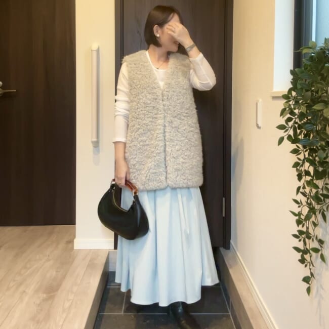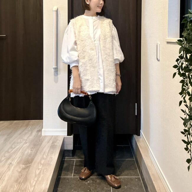 【最低気温19度】ファーベスト×シアートップスで!30代ママの秋コーデ【LEE11月号】