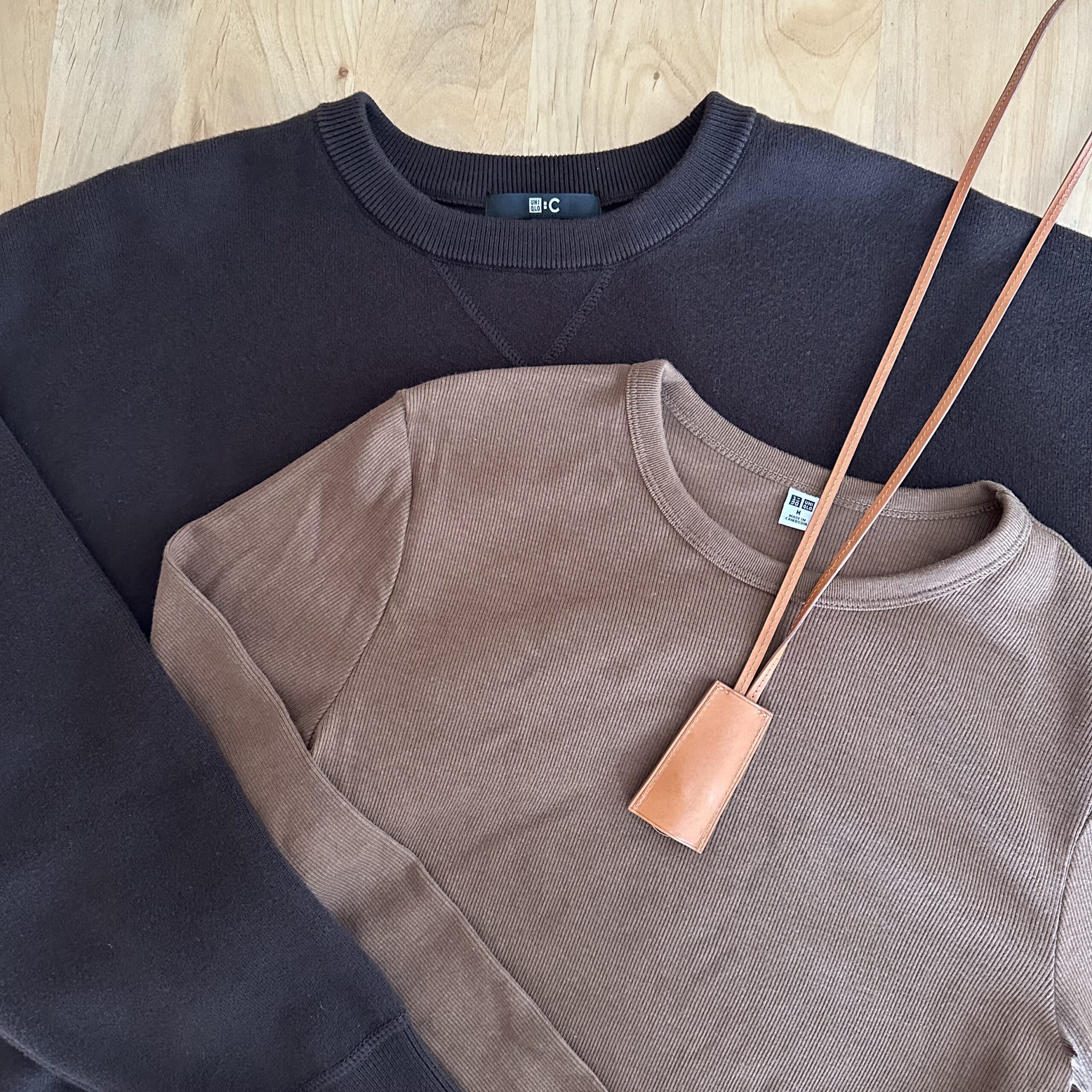 ユニクロで見つけた2つのブラウン【スムースコットンクルーネックセーター&ソフトリブクルーネックT】