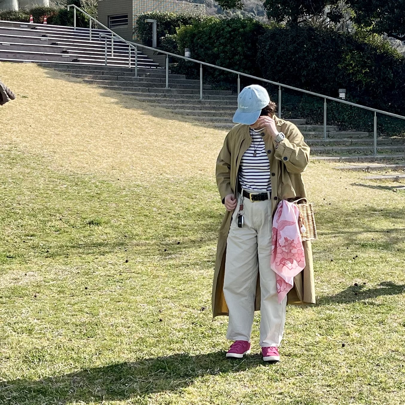 久々にトレンチ着ました