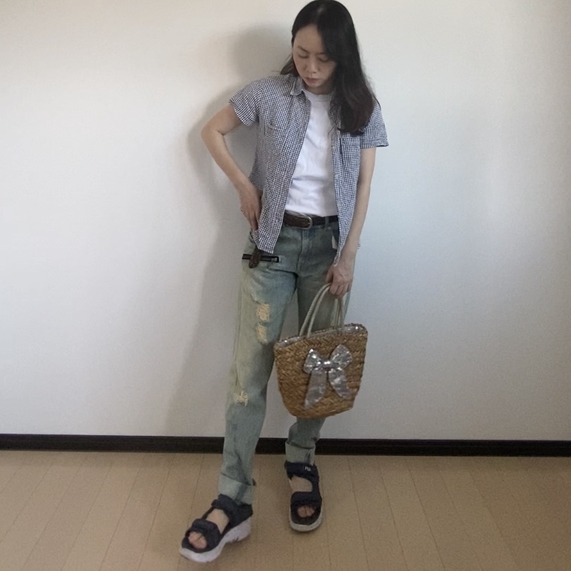 【40代猛暑日コーデ】ユニクロTで水色×黒のワンツーコーデ