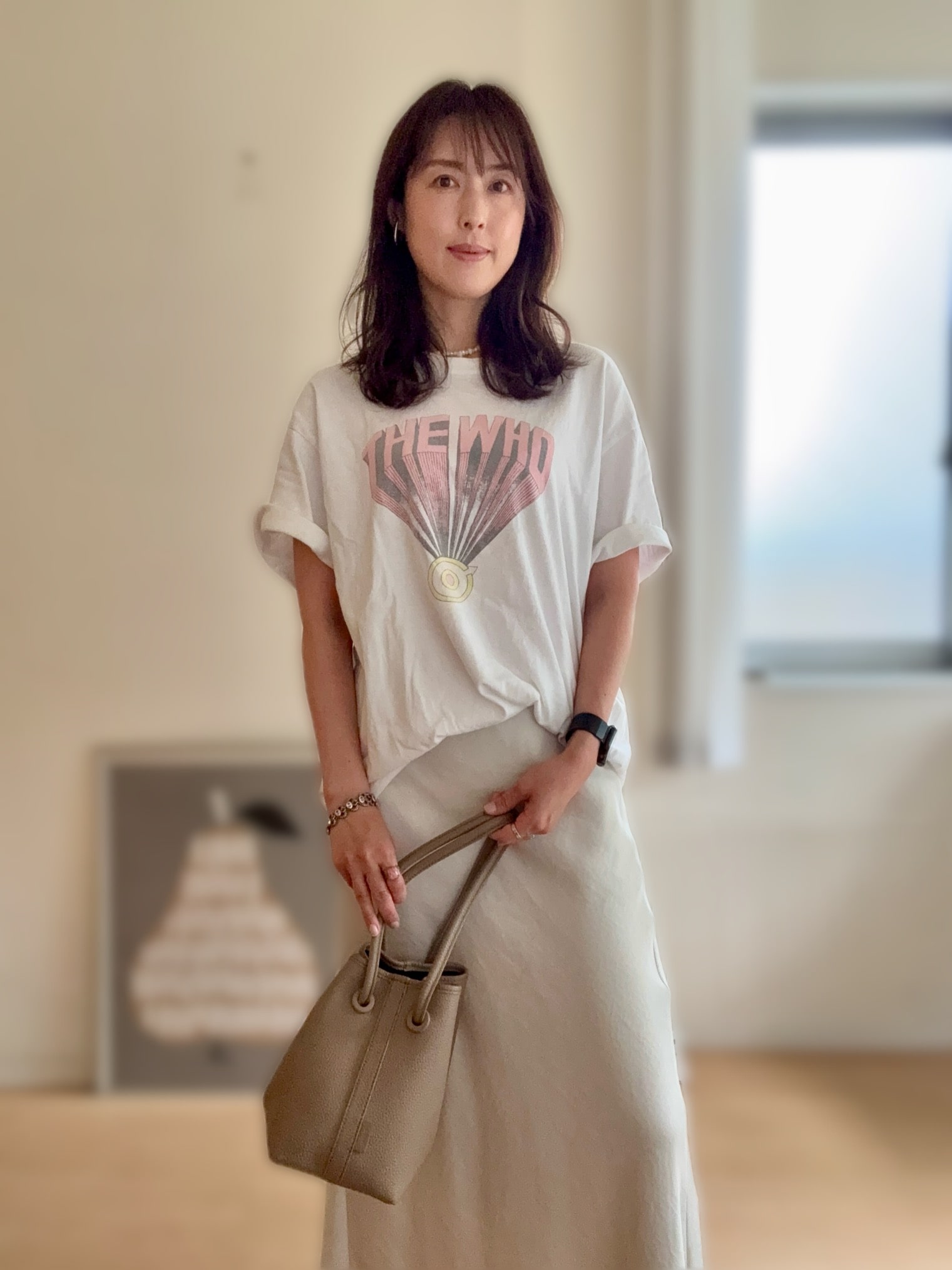 [大人のTシャツコーデ]ルームエイトスムースコットンネックオープントップスの着回し[OOTD]